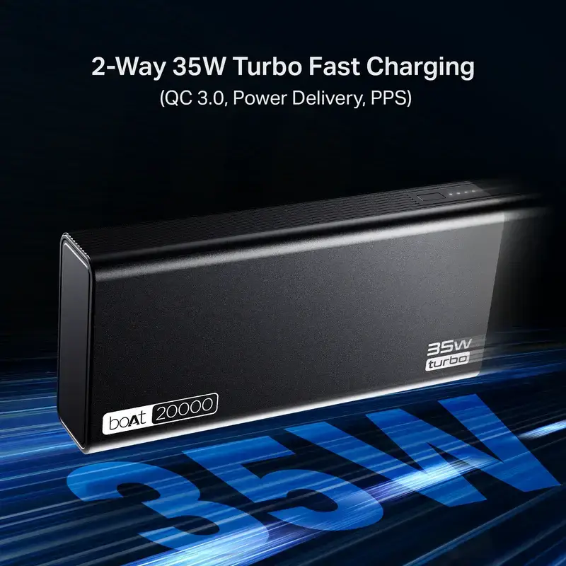 Powerbank with 35W Fast Charging, 20,000mAh, 12-Layer Smart IC Protection, Aluminium Casing - Crafted with a high-grade aluminium enclosure, the PB435 Turbo offers durability and a refined finish. Resistant to everyday wear and designed for longevity, it maintains its premium look even with rough use.