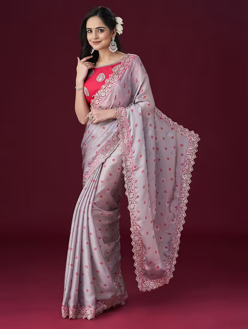 Grey and pink saree\