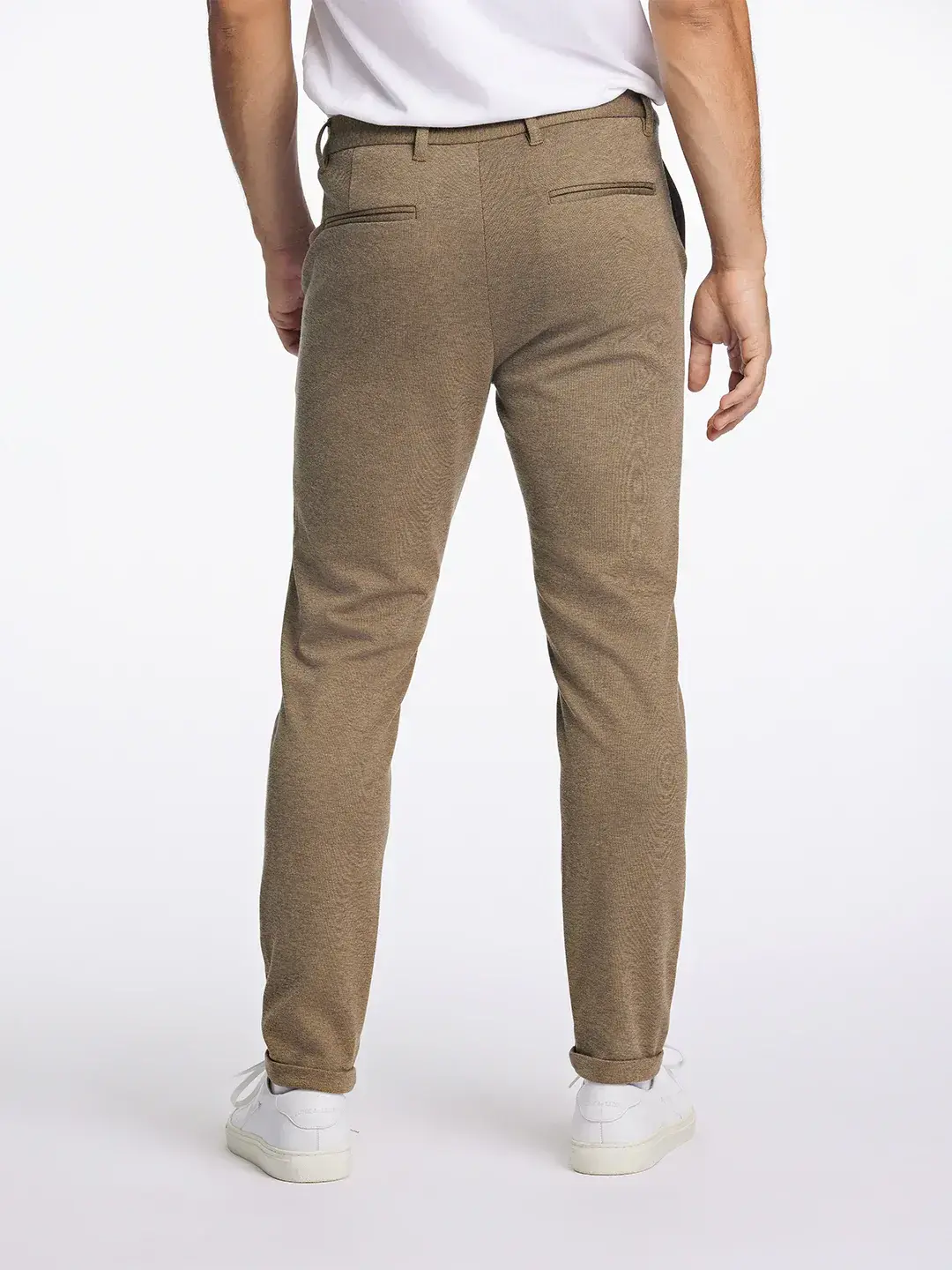 Elevate your style with these sleek, beige slim-fit trousers. Crafted from premium fabric, these solid trousers offer a sophisticated look for any occasion.